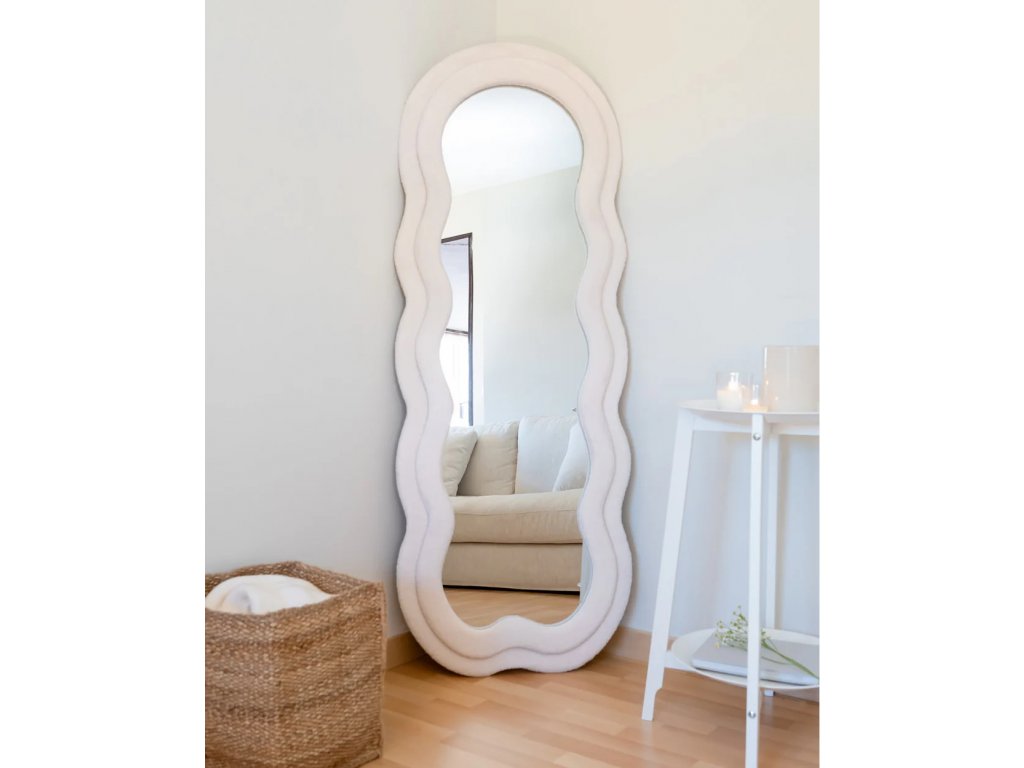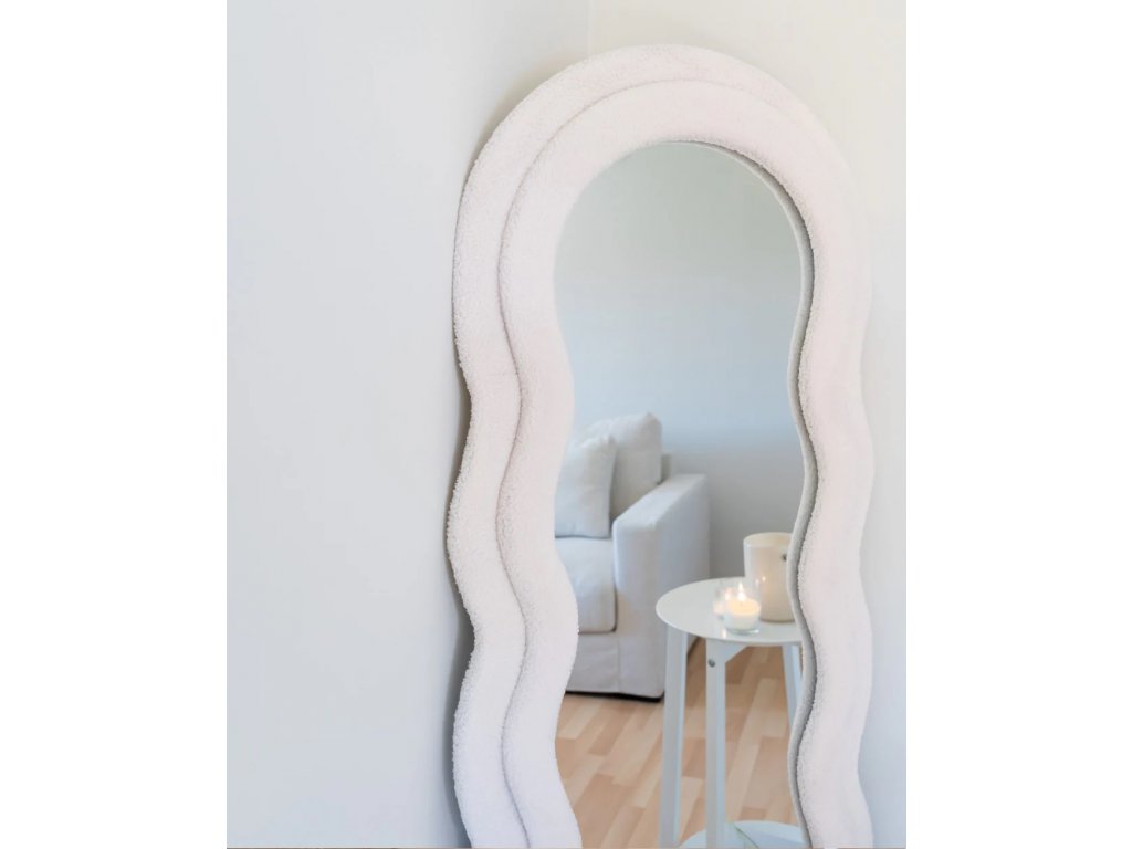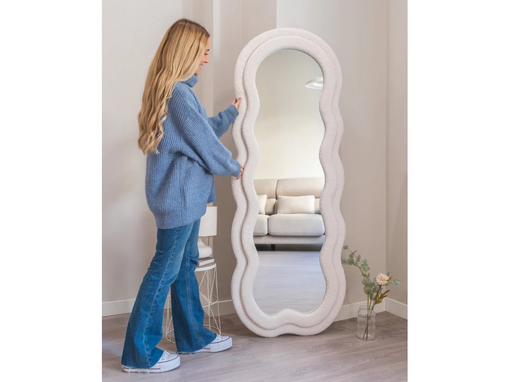 Vlnité nástenné alebo samostatne stojace zrkadlo je dokonalou kombináciou krásy a funkčnosti. Unikátny dizajn s plyšovým rámom. Svojím moderným a mäkkým dizajnom s vlnitým rámom sa stane stredobodom pozornosti každej izby. Rozmery 160x60 cm.