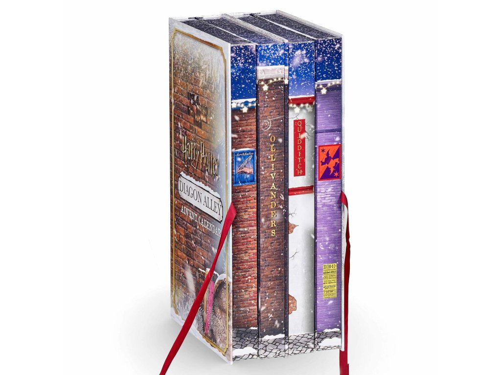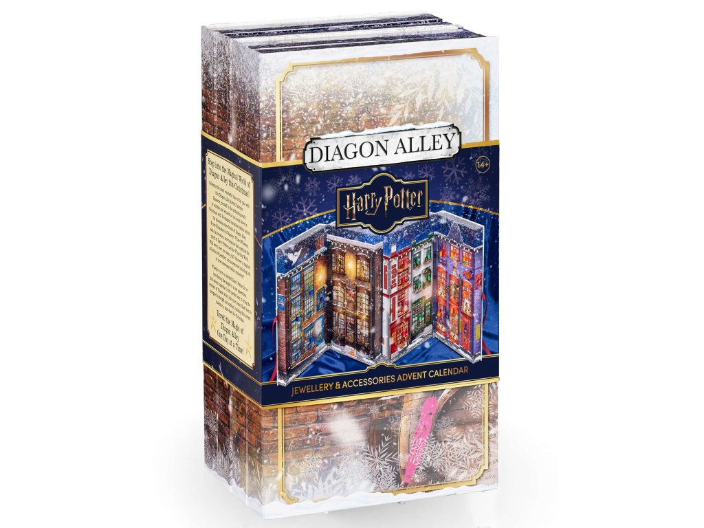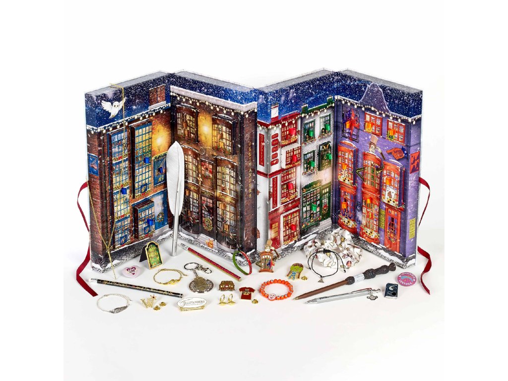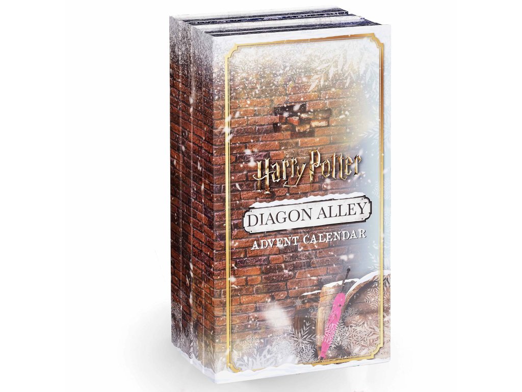 Adventný kalendár Harry Potter inšpirovaný čarodejníckou Šikmou uličkou s 24 okienkami plnými čarovných prekvapení. Obsahuje produkty v hodnote takmer 200 €.