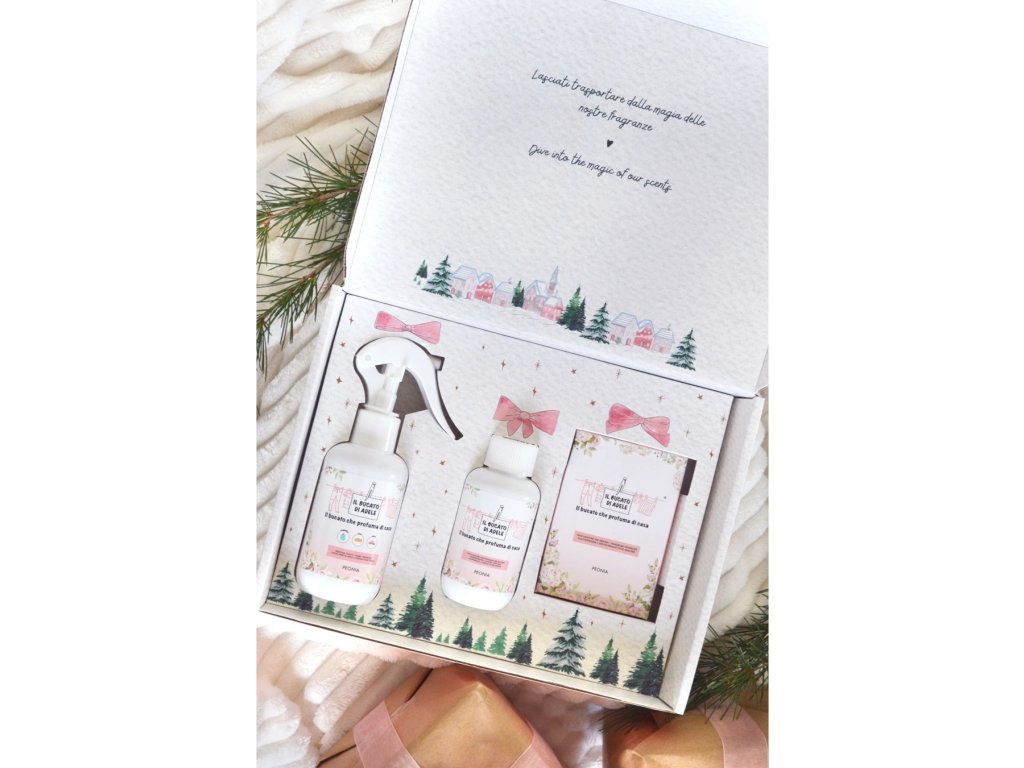 Vianočná darčeková kazeta v jedinečnom balení s olejom do prania, sprejom a voňavými vrecúškami do šatníka.