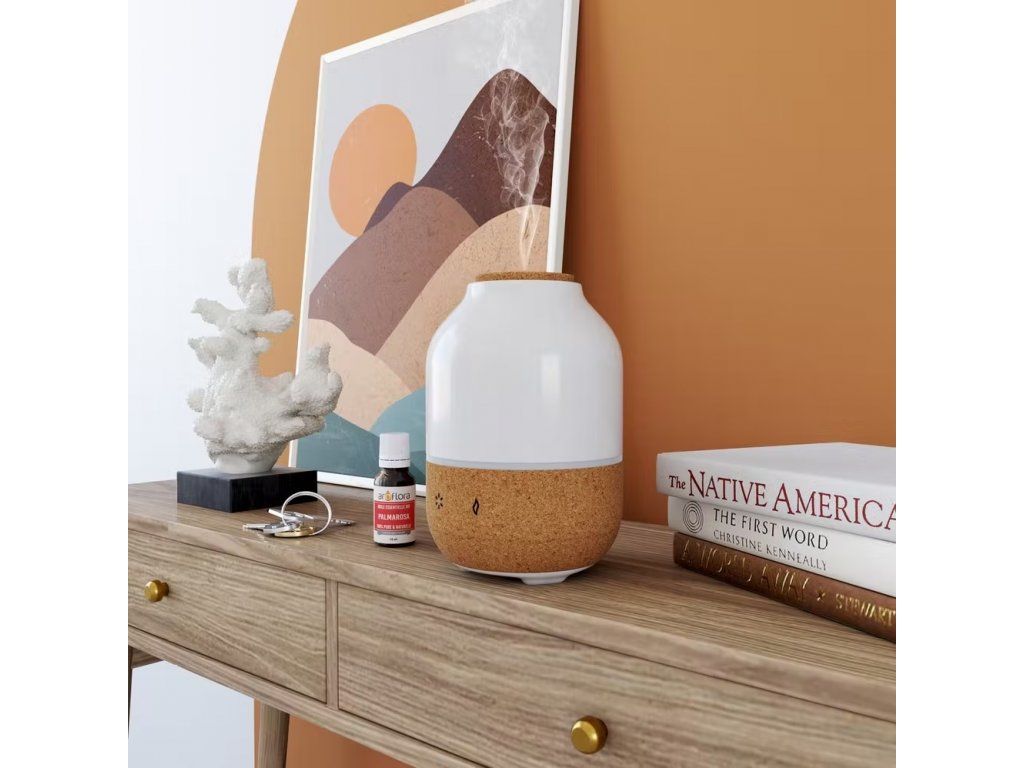 Vďaka keramickému krytu a korkovej základni ponúka dizajn, ktorý je novinkou vo svete difúzie esenciálnych olejov. Dvoma slovami: zmyselnejší a alegantnejsí. Ultrazvukovo rozptyľuje vaše esenciálne oleje za studena v jemnej hmle. Jeho farebný prstenec sa rozsvieti, aby sprevádzal difúziu. Lealia pracuje na báze ultrasonickej difúzie, čo znamená, že jeho jemná hmla zvlhčuje vzduch vo miestnosti.
