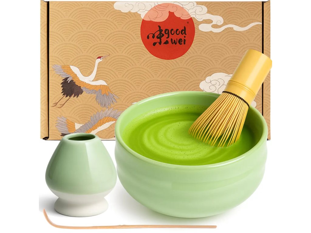 - Matcha set je zabalený v pevnom boxe, ktorý je ideálny aj ako darček