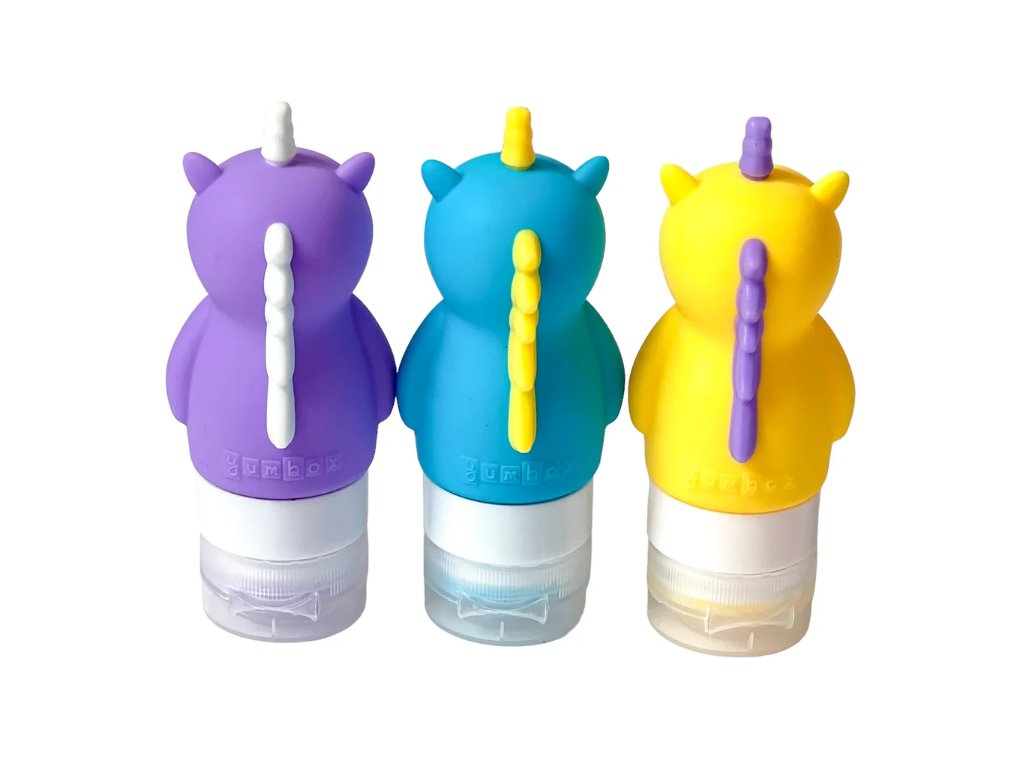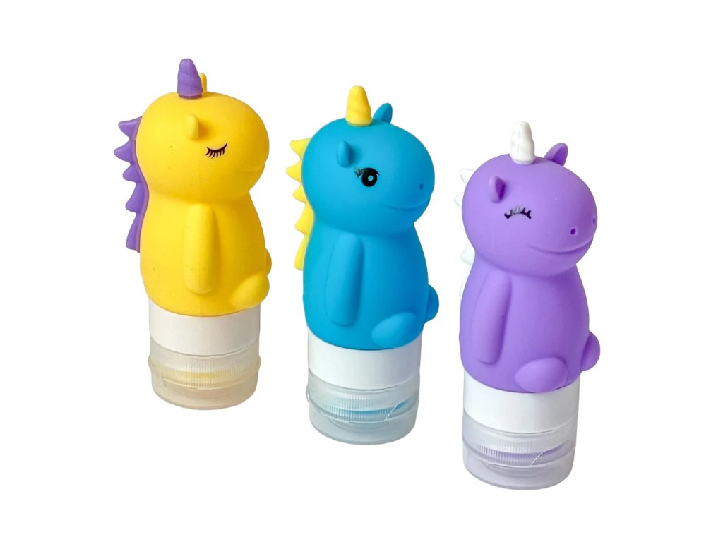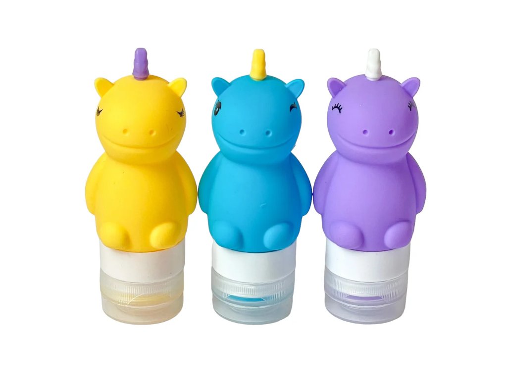 Sada troch silikónových stláčacích fľaštičiek v tvare jednorožcov - 60 ml