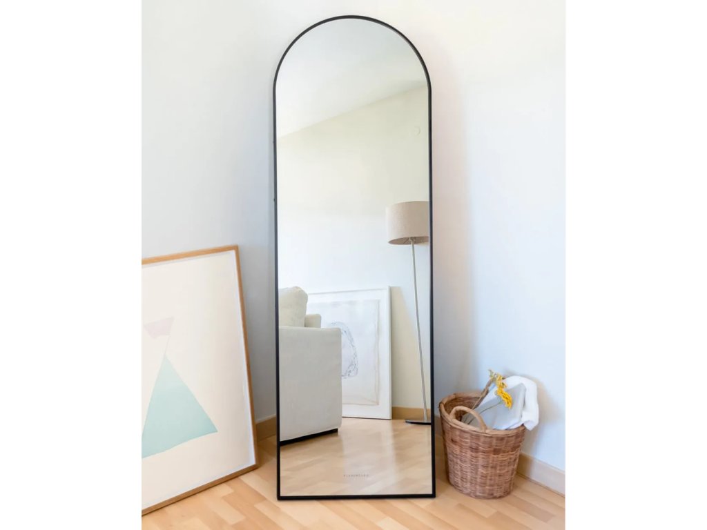 Celoplošný formát poskytuje pohodlný pohľad na celú postavu a je ideálny na každodenné používanie, najmä pri výbere outfitu. Zlatý hliníkový rám dodáva zrkadlu elegantný vzhľad bez toho, aby pôsobil rušivo.